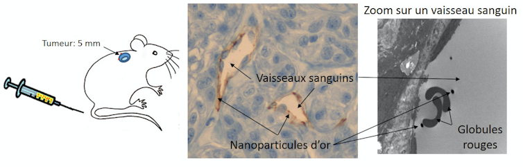 Patients being treated this way are first injected with gold nanoparticles into their bloodstream through an IV. Since gold is biocompatible, it presents no apparent danger to health in the concentrations used in therapy, as borne out by our studies in mice. However, not all questions have been resolved concerning these new applications. Gold nanoparticles go undetected by the body’s immune defence system. Their nanometric scale means they are generally one hundred times smaller than cells, allowing them to move freely through the blood system and enter the tumour.